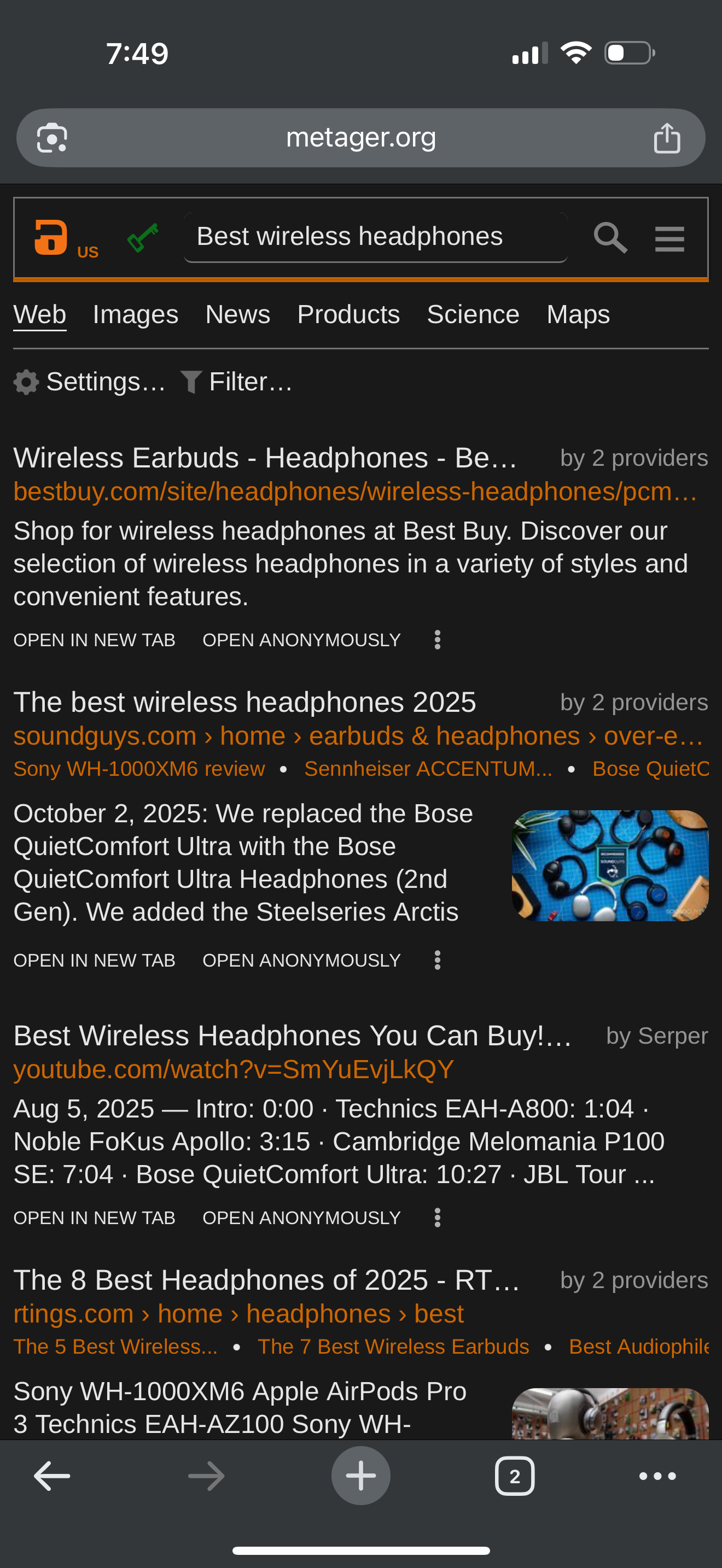 An open-source metasearch engine that aggregates search engines of your choosing. Recommended for more technical users who want a configurable search through a provider.